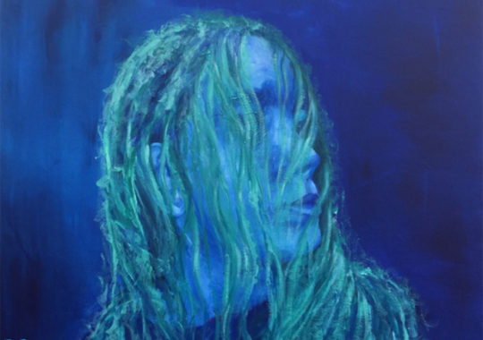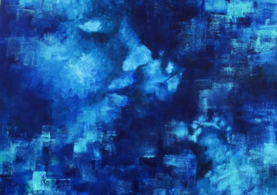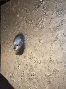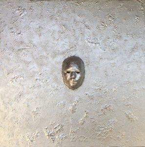 From far we could see the attractive silvery effect of the so-called “Perfect World” with the “pretend shiny face” placed in the middle. The closer we get, cracks, glitches and imperfections in the background and the human face, would be seen; the cracks of the virtual world and its illusion of perfection.